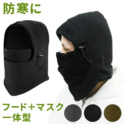 フリース素材フード付き防塞フェイス・ネックウォーマー ブラック 防寒 フェイスマスク レディース ネックウォーマー メンズ スポーツ あったか スノボ アウトドア バイク フリース ネックゲイター 送料無料